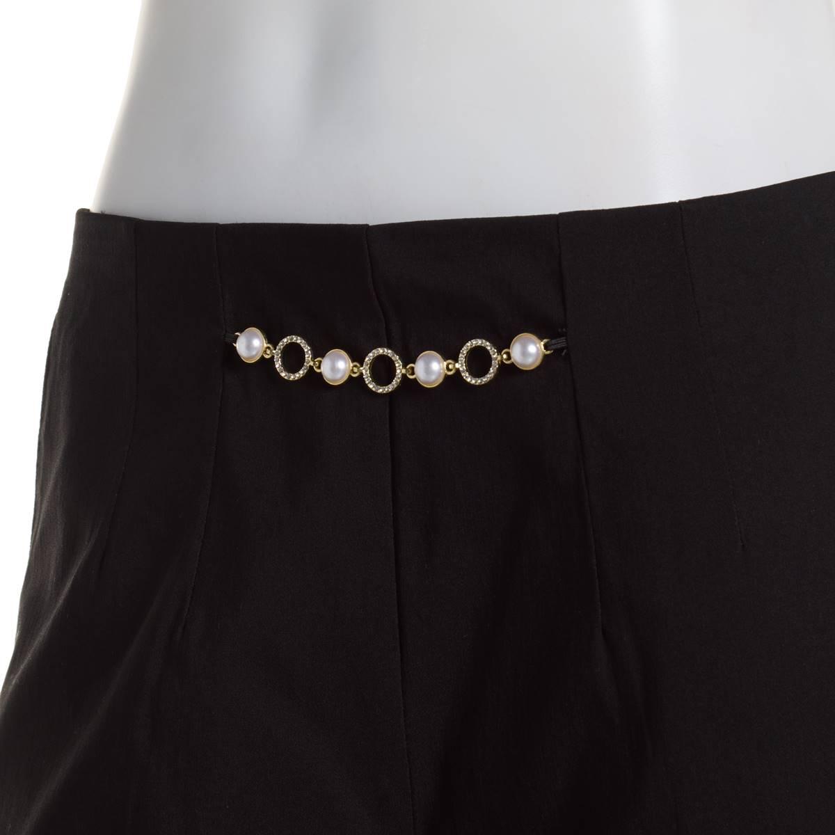Pattern: Solid Leg Style: Ankle Rise: Mid-Rise Fit: Regular Fit Embellished link waist detail Pleat accented front Side entry pockets Pull-on styling Warm iron.