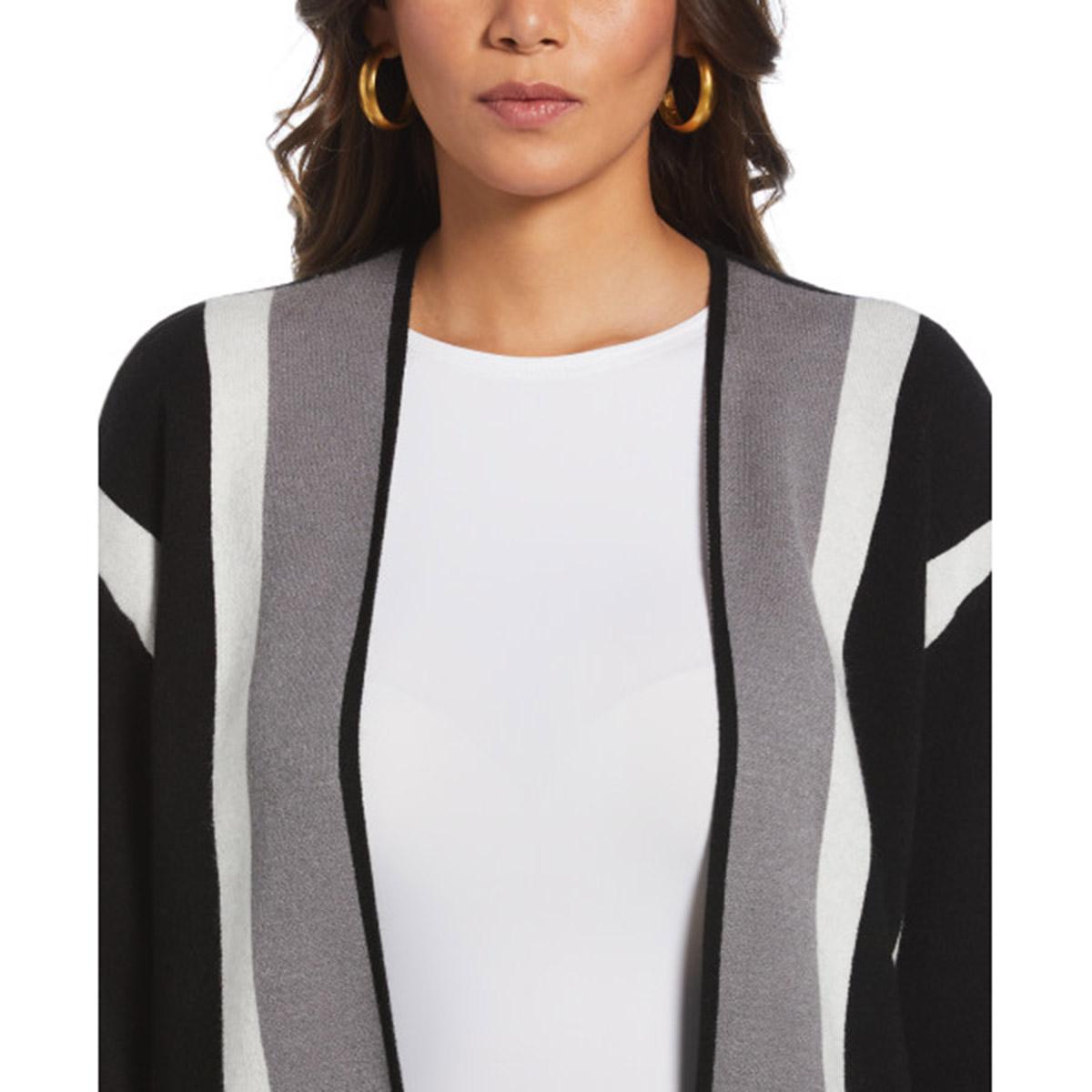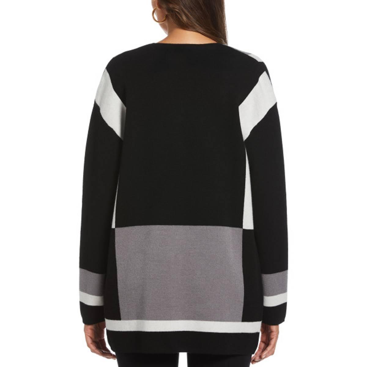 Womens Rafaella Long Sleeve Color Block Jacquard Cardigan