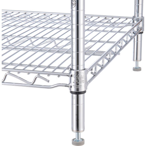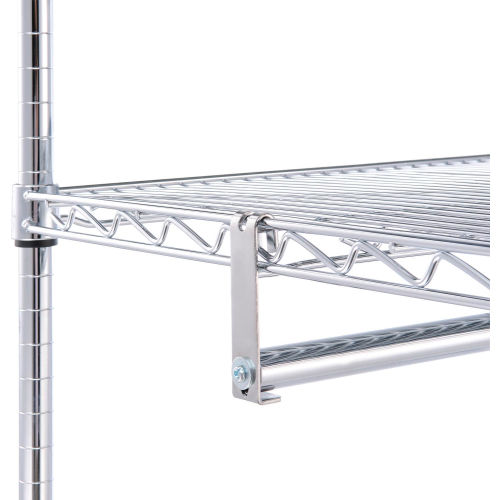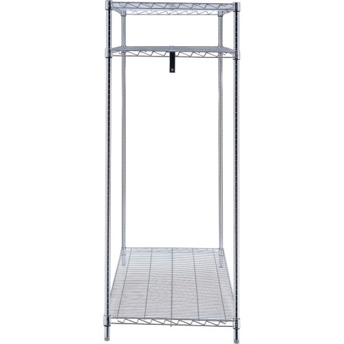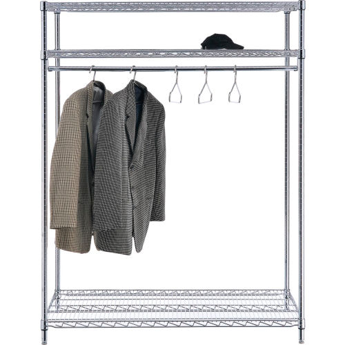 Nexel 3 Shelf Garment Floor Rack Attractive solution to garment storage. Durable chrome plated steel wire design minimizes dust accumulation. Resists denting, chipping and rusting. The full length coat rod holds up to 250 lbs. Dimensions: 24"D x 48"W x 74"H. Assembles quickly. Optional casters available.