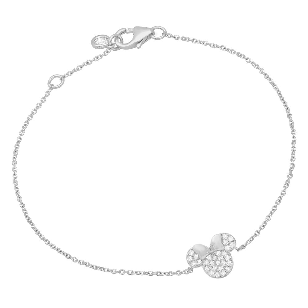 You can take Minnie's sweet style wherever you go with this Minnie Mouse Icon Bracelet by CRISLU. Adorned with handset flawless cubic zirconia, this glamorous jewelry is crafted from sterling silver and finished in pure platinum.