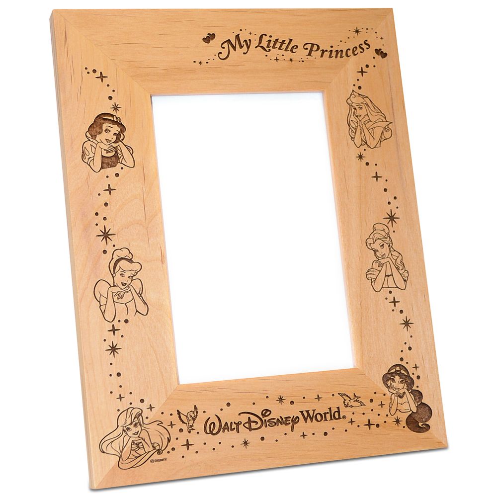 Dream of precious Magic Kingdom memories as treasured ever after in our Disney Princess burnished wood frame, direct from Walt Disney World resort, and graced with your own name or message to continue the royal lineage.