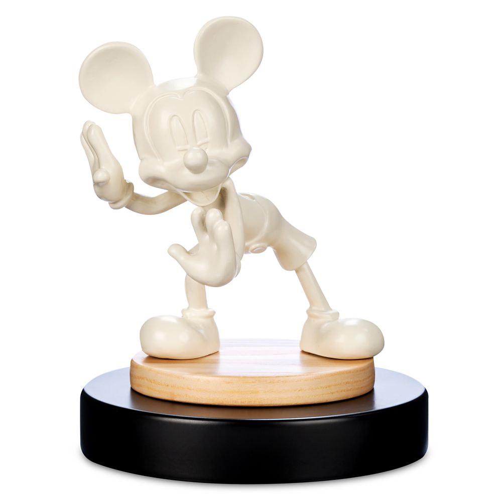 Mickey is getting animated with this mid-action pose. Our fully sculpted metal figurine is impressive in pure white on a double level base of natural wood and black metal. Both striking and fun, it is an artful way to express your Disney fandom whether it is placed as a bookend, doorstop or sculptural décor anywhere in your home.