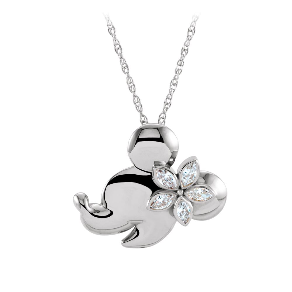 In true Polynesian style, Minnie's wearing a flower behind her ear, though this one is encrusted with dazzling diamonds. Crafted in gold, this Minnie necklace is a sparkling reminder of your exotic Aulani, A Disney Resort & Spa vacation.