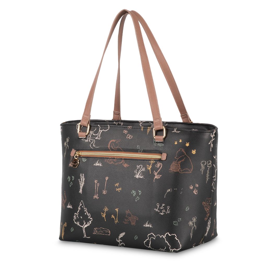 This stylish Winnie the Pooh cooler bag is the perfect accessory for every picnic, beach trip or visit to the Hundred Acre Wood. The carry all is made of faux leather and features a fully insulated interior, goldtone hardware, two carrying straps and zipper pocket with an allover print of Pooh bear and his pals.