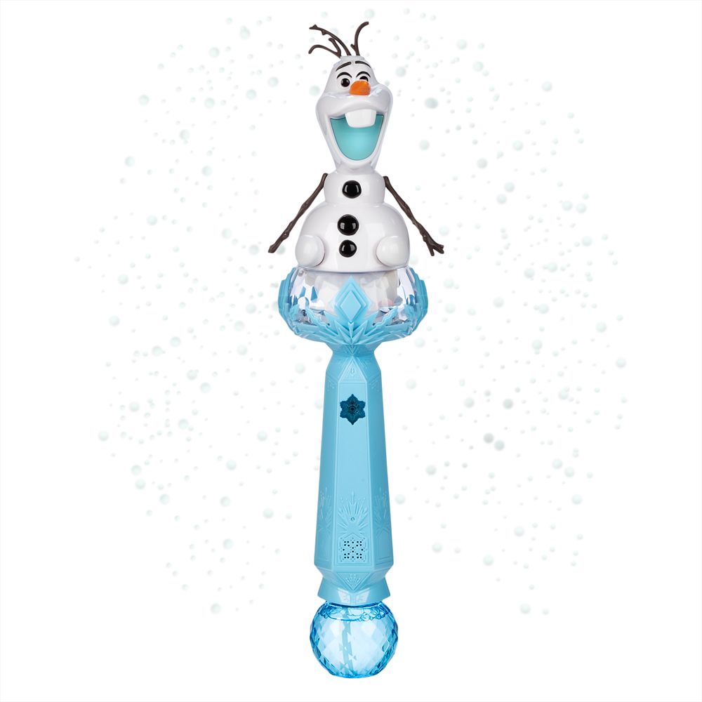 Our Olaf musical light-up snow wand will melt the hearts of fans of the beloved snowman from Disney's Frozen. Olaf is perched atop the icy blue design that glows while sending a stream of ''snow'' into the air as he sings In Summer from the movie. Sure to prompt smiles as big as the one on Olaf's face, you'll never want to let it go.