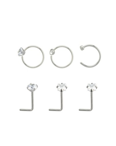 Buy Multi-Pack Round and Square CZ L-Bend Nose Rings and Hoop Nose Rings 6 for $19.99 at @ Spencersonline.com