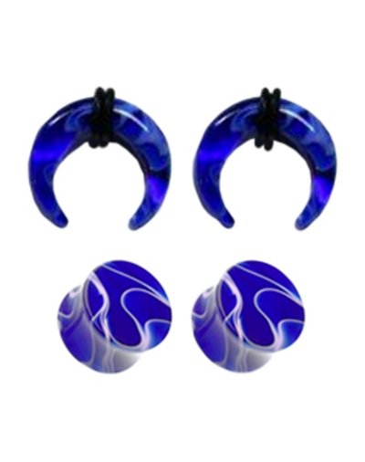 Multi-Pack Blue Marble Acrylic Pinchers and Plugs - 2 Pair