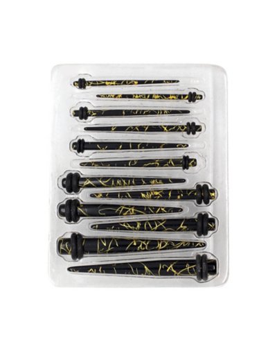 Buy Black and Goldtone Marble Ear Tapers Kit - 6 Pair for $24.99 at @ Spencersonline.com