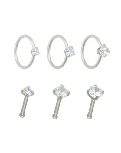 Buy Multi-Pack CZ Bone Nose Rings and Hoop Nose Rings 6 Pack - Gauge for $19.99 at @ Spencersonline.com