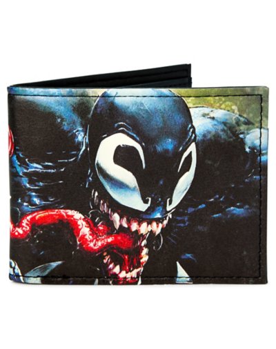Bring your favorite comic book character with you on every shopping trip with this Venom tongue bifold wallet! This stylish wallet is the perfect accessory for any Marvel fan. Officially licensed 4 credit card slots 1 cash compartment Bifold closure Dimensions: 4.25" H x 3.4" W x 0.75" D Material: Polyurethane, polyester Care: Spot clean Imported.