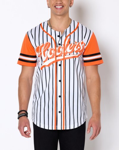 Bring the heat with this officially licensedHooters Striped Baseball Jersey! This baseball-inspired jersey features a striped design with raglan sleeves and iconic Hooters colors. Sport your number "00" on the back of this jersey! Officially licensed Short sleeves Button closure Care: Spot clean Imported For a fitted look, order one size smaller than your regular size.