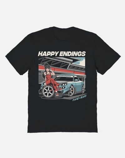 The Happy Ending Racing T-Shirt brings the thrill of the track with a cheeky twist. Bold and playful, its the ultimate pick for those who like their style fast and fun! Crewneck Short sleeves Material: Cotton Care: Machine wash; tumble dry low Imported This shirt is Unisex Sizing only For a fitted look, order one size smaller than your normal size Note: This item is print to order and may have a 1-2 day extra processing time.