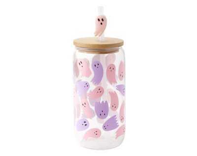 Looking for a new cup that's the perfect blend of spooky and sweet? This exclusive Pink and Purple Ghost Glass Cup with Straw is just one haunt (& an "Add to Cart") away! Made with sleek, durable glass and adorned with an adorable ghost straw topper, this piece is an absolute must. Exclusively at Spencer's Includes: Cup Lid Straw Straw Topper Dimensions: 8" H x 3" W x 3" D Material: Glass Capacity: 16 oz. Snap lid closure Care: Hand wash Note: Not dishwasher safe Imported.