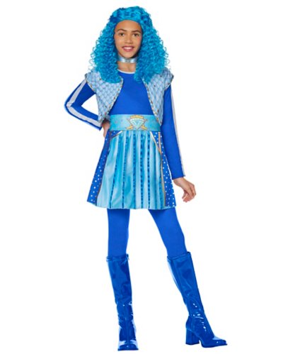 Channel your inner Chloe Charming this Halloween when you sport this officially licensed Kids Chloe Dress Costume! Complete with a dress, vest, tights, choker, and belt, this set's brilliant blue hues and simply charming design will have you looking like you just stepped off the big screen. Officially licensed Includes: Dress Vest Choker Belt Tights Long sleeves Material: Polyester, nylon Care: Spot clean Imported Note: Shoes and wig not included.