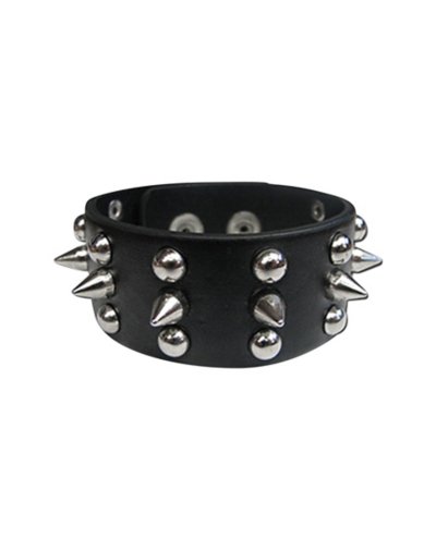 Buy Black Leather 3 Row Spike Bracelet for $14.99 at @ Spencersonline.com