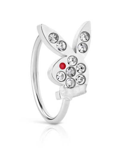 Buy CZ Silvertone Playboy Bunny Hoop Nose Ring - 20 Gauge for $16.99 at @ Spencersonline.com