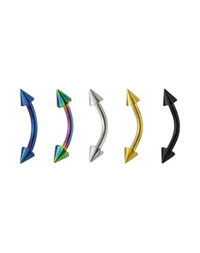 Includes: 5 Curved barbells Piercing type: Eyebrow Material: 316L Surgical steel Accent Material: Metal alloy Gauge: Gauge/1.2mm Length: 3/8"/10mm Threaded closure Jewelry care: Clean with antibacterial soap and warm water Piercing Care: Clean with H2Ocean Aftercare Spray (sold separately) or saline solution Imported Note: Do not use any harsh, alcohol-based chemicals as this may cause tarning Do not over-thread or apply excess pressure when adding/removing beads as breakage may occur Surgical steel may contain trace amounts of nic.