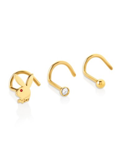 Buy Multi-Pack CZ Goldtone Playboy Bunny Screw Nose Rings 3 Pack - 20 Gaug for $19.99 at @ Spencersonline.com