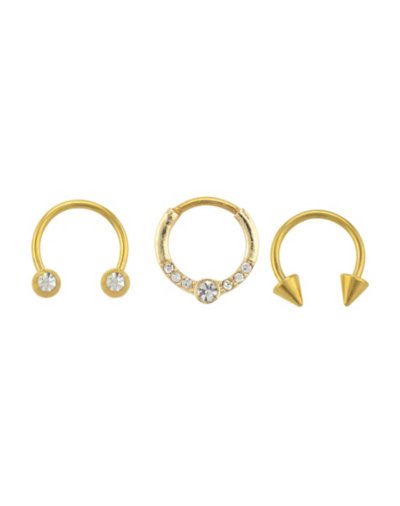 Buy Multi-Pack CZ Goldtone Horseshoe Rings and Clicker Septum Ring 3 Pack for $19.99 at @ Spencersonline.com