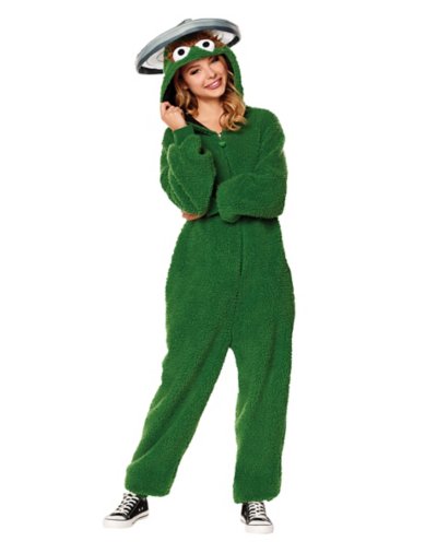Take on Halloween night in Sesame Street style as everyone's favorite trash can-dwelling grouch, Oscar! This officially licensed union suit features soft green detailing from head to toe and an attached hood adorned with Oscar the Grouch's face and a trash can lid hat. With a look like this, you'll look just like Oscar! Officially licensed Includes: Jumpsuit with attached hood Crewneck Long sleeves Zipper closure Material: Polyester Care: Spot clean Imported Note: Shoes sold separately.
