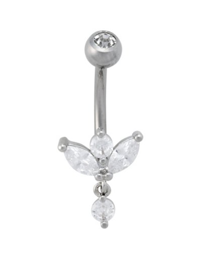 Buy Silvertone Titanium CZ Fan Cluster Dangle Belly Ring - Gauge for $20.99 at @ Spencersonline.com
