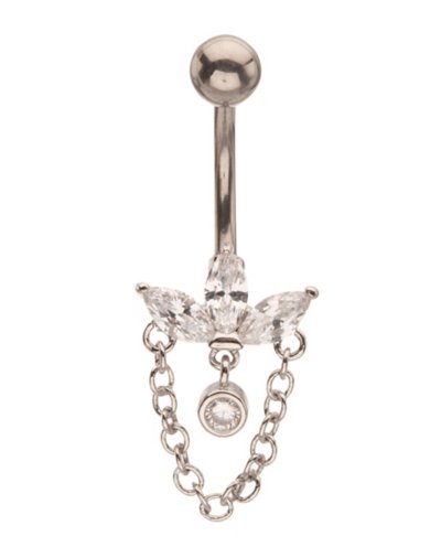 Buy Silvertone Titanium CZ Fan Cluster Chain Dangle Belly Ring - Gauge for $32.99 at @ Spencersonline.com