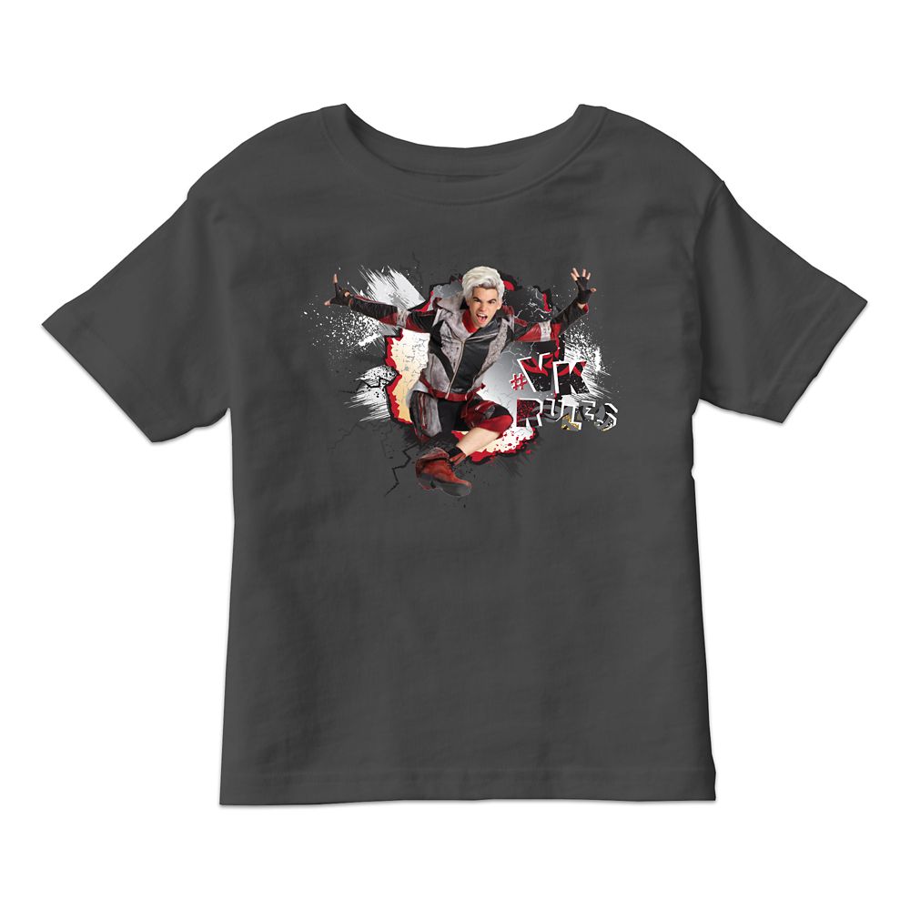 Carlos from Descendants 2 is the son of Cruella De Vil, and he's busting out on this rockin' tee to let everyone know that villain kids rule. Customize the shirt color to find the one that best fits your kid's Descendants style.