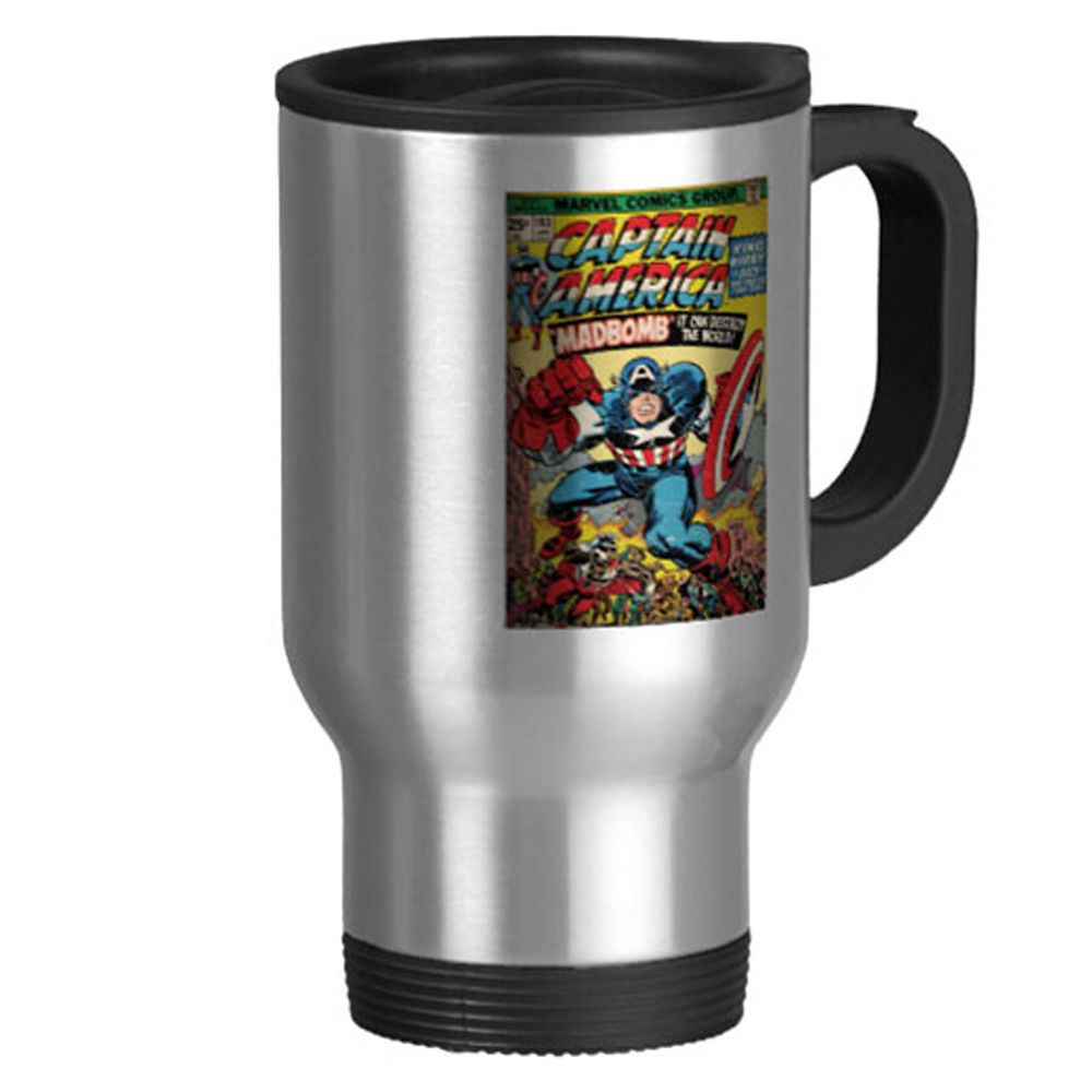 Hit-the-road on your campaign against crime with your choice of heroic Captain America art on this sturdy mug.