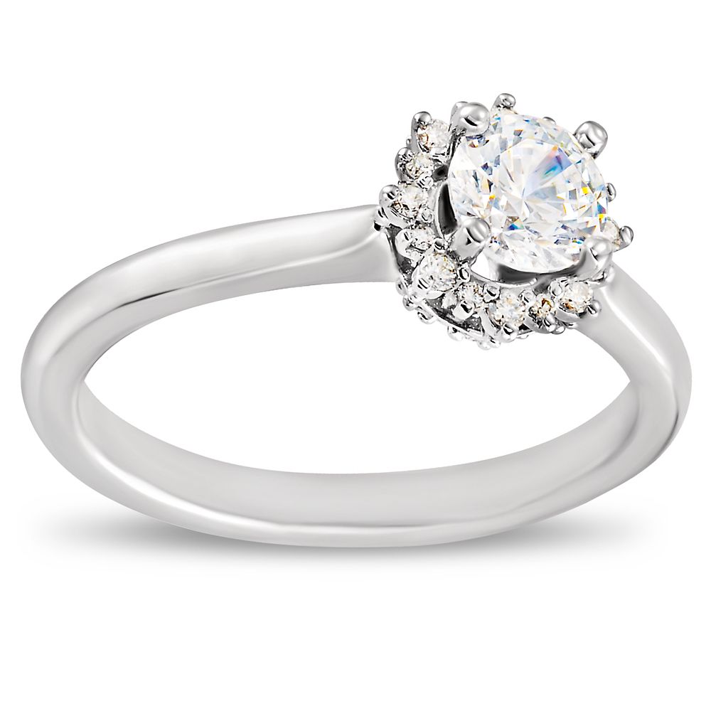 Crown your fairy tale occasion with this elegant diamond ring that sparkles with Disney magic. The halo setting's central faceted diamond is available in a choice of carats and is set upon a dazzling crown encrusted with diamonds which glisten against the 14K white gold band.