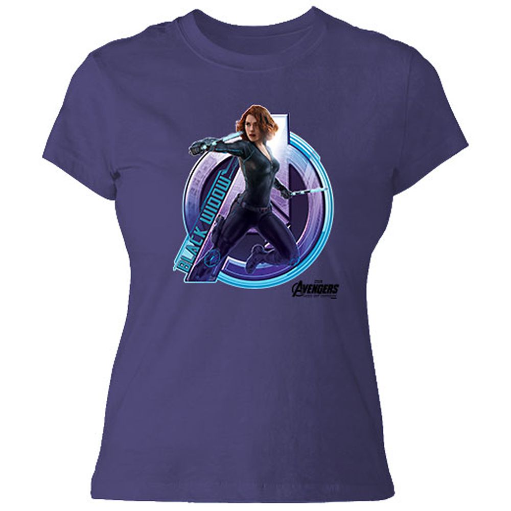 Black Widow spins a web of intrigue for this fitted fashion tee for adults with your choice of mighty Marvel art inspired by the film Marvel's Avengers: Age of Ultron.