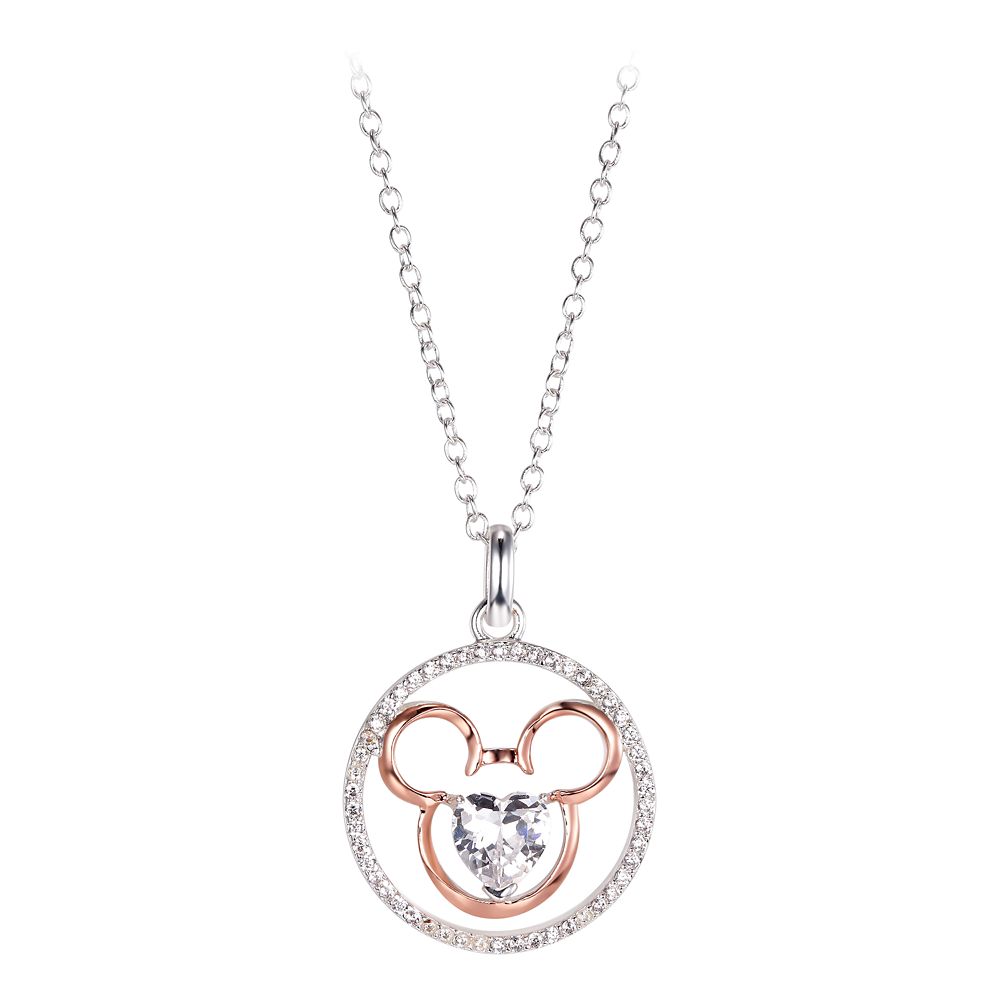 Mickey shows his large heart with this dazzling necklace. His iconic outline is finished in rose gold and features a faceted heart of cubic zirconia set within a pink-toned circle of sparkling cubic zirconia.