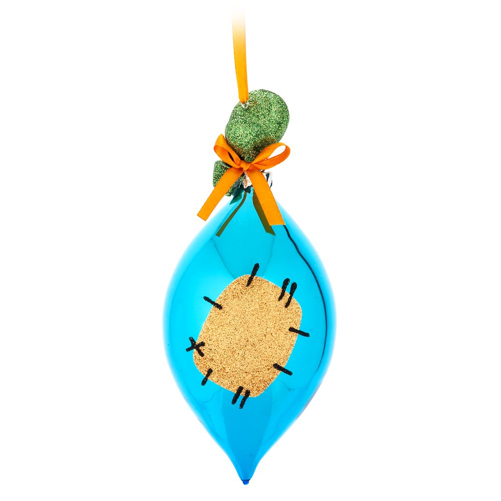 Goofy strikes his trademark colors for Santa on this blown glass bauble ornament. The deconstructed design of Disney's silliest star features a glittering hat and ''patched pants.'' Hang him low in the tree in case he falls!.