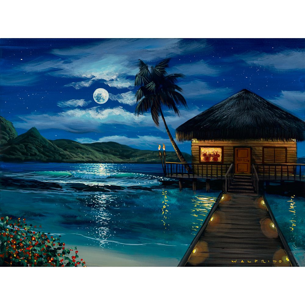Buy Mickey and Minnie Mouse ''Moonlit Bungalow'' Gallery Wrapped Canvas by Walfrido Garcia Limited Edition Official shopDisney for $150.00 at @ DisneyStore.com
