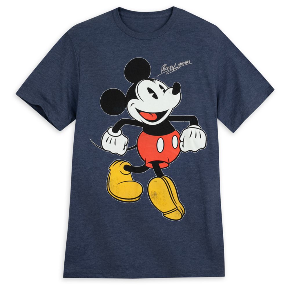 Classic Mickey strides across the front of this heathered tee in a jaunty fashion, giving you plenty of positive energy to imitate. His embroidered ''signature'' provides a personal greeting just for you. Wear this happy fashion to brighten smiles wherever you go!.