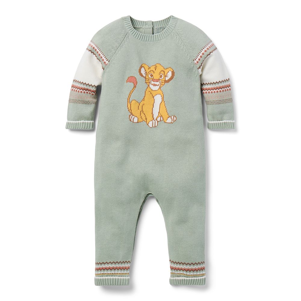 Inspired by the Disney animated classic, this Simba one-piece sleeper features intarsia art of the future Lion King on the front and Fair Isle-style stripes on the raglan long sleeves and cuffs. So cute and cozy, this soft cotton knit sleeper is designed with love for your pride and joy.