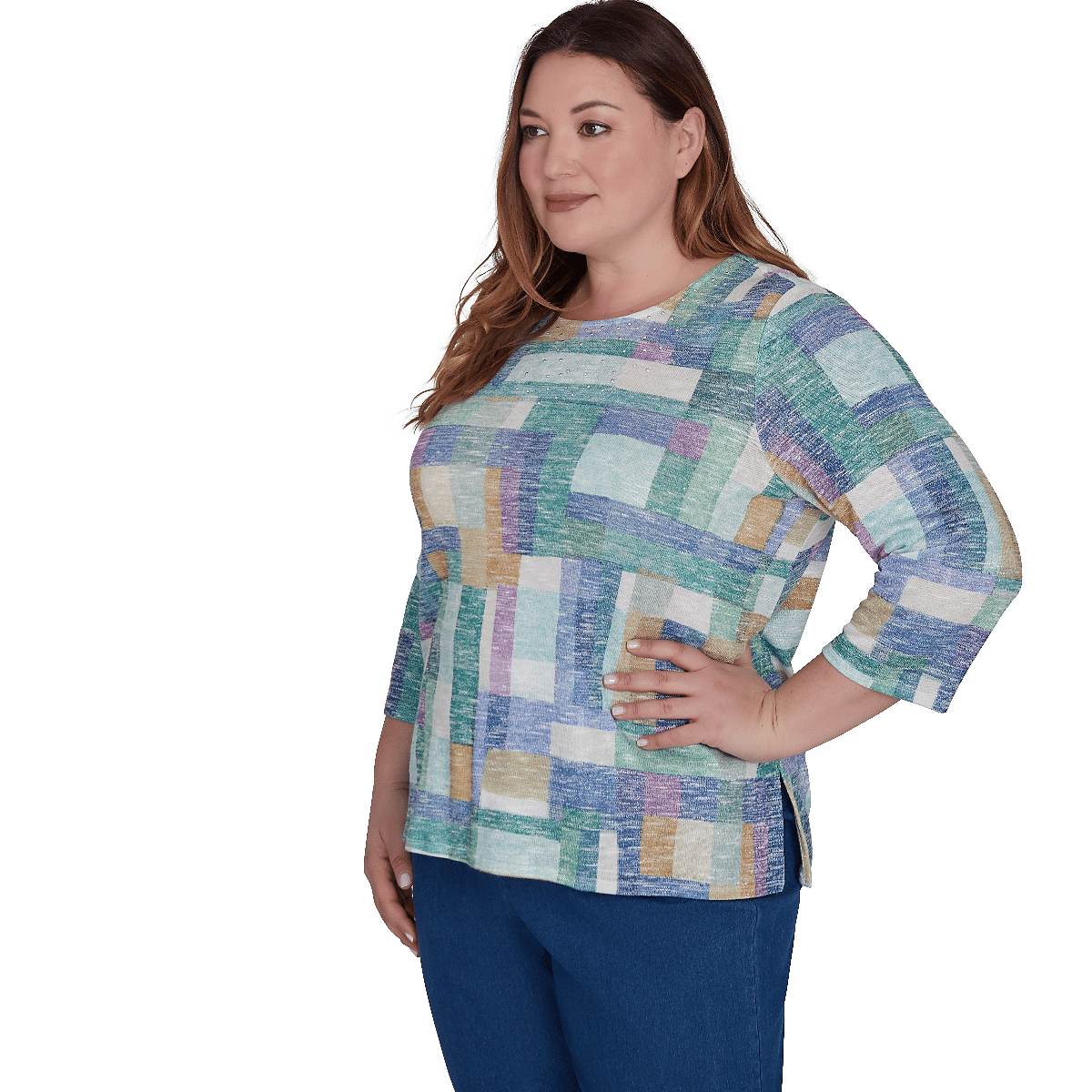 Buy Plus Size Alfred Dunner Lake Victoria 3/4 Sleeve Color Block Tee for $44.45 at @ Boscovs.com