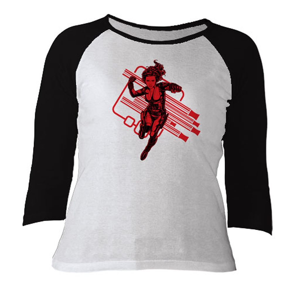 Add some punch to your wardrobe with this Black Widow Raglan Long Sleeve Tee for Women. The Avenger teams up with the retro styling of this all-cotton top to create a dynamic duo that can be customized to create a unique tee.