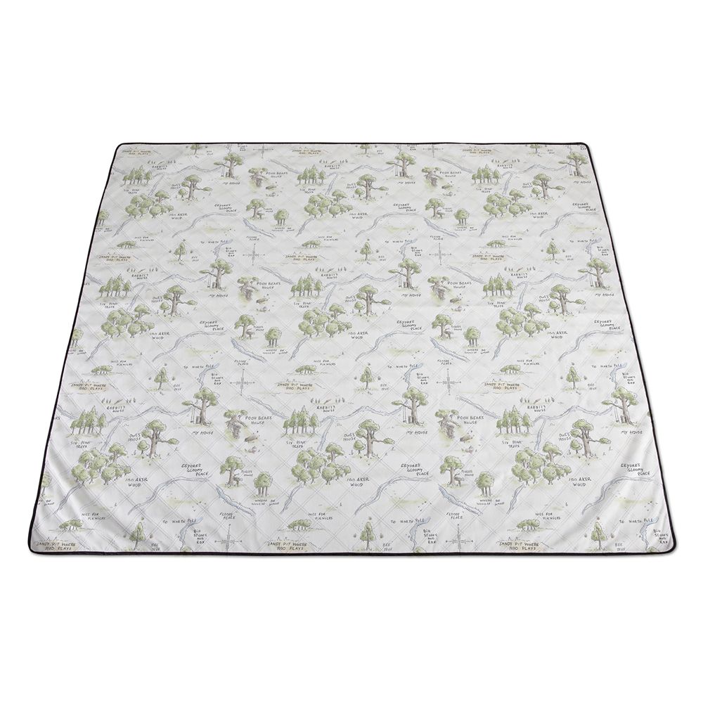 Picnics are always more fun in the company of Winnie the Pooh whose Hundred Acre Wood is featured in the allover design of this ultra-light picnic blanket made of water-resistant polar fleece! Not only can you get cozy with a soft, snuggly, and perfectly portable picnic blanket set, you get a handy drawstring backpack too. Easy to spread out for the whole family, the blanket folds easily to stash in the bag which features a delightful illustration of Pooh who's pictured outside ''Pooh Bear's Howse.''.