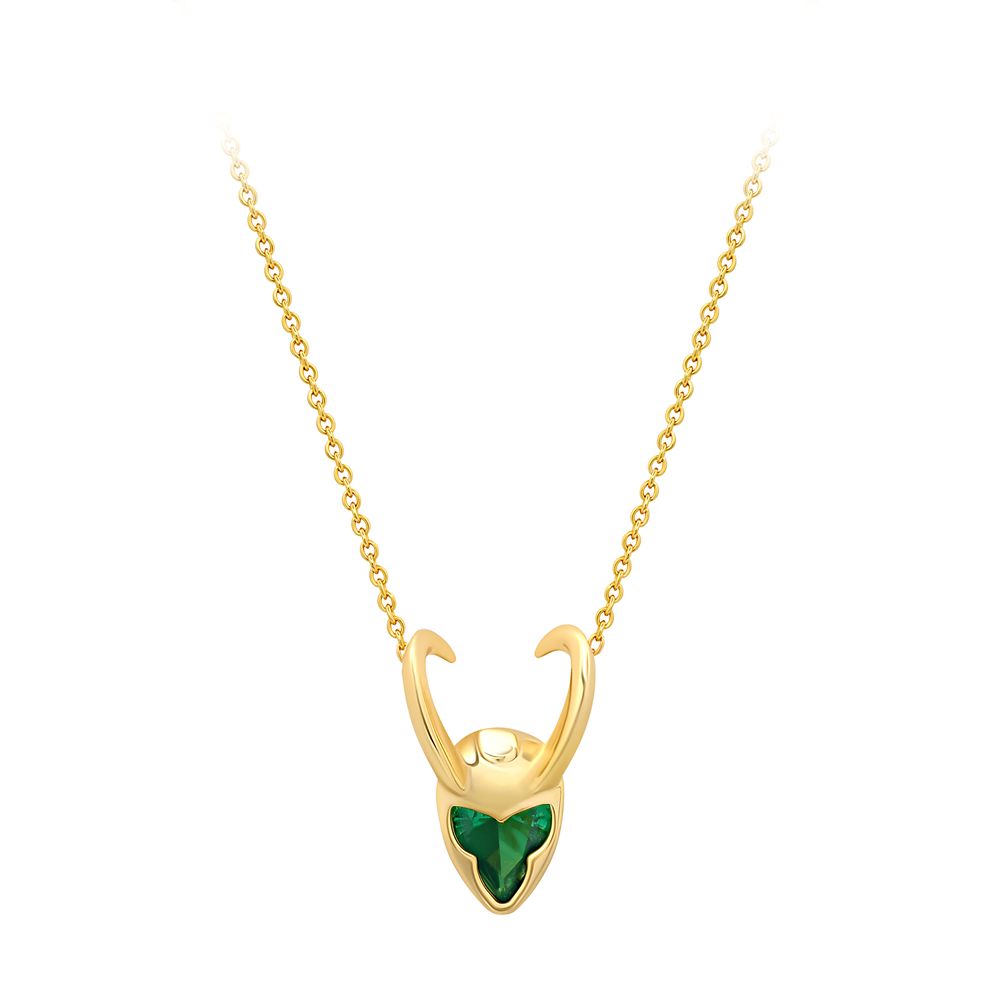 All the confidence and attitude of the God of Mischief are captured in this sterling silver Loki necklace by CRISLU featuring gleaming 18k yellow gold finish and a custom cut, handset flawless cubic zirconia stone in his signature green. Wear it and master an all-time fabulous look, and it's so much more convenient than wearing horns on your head.