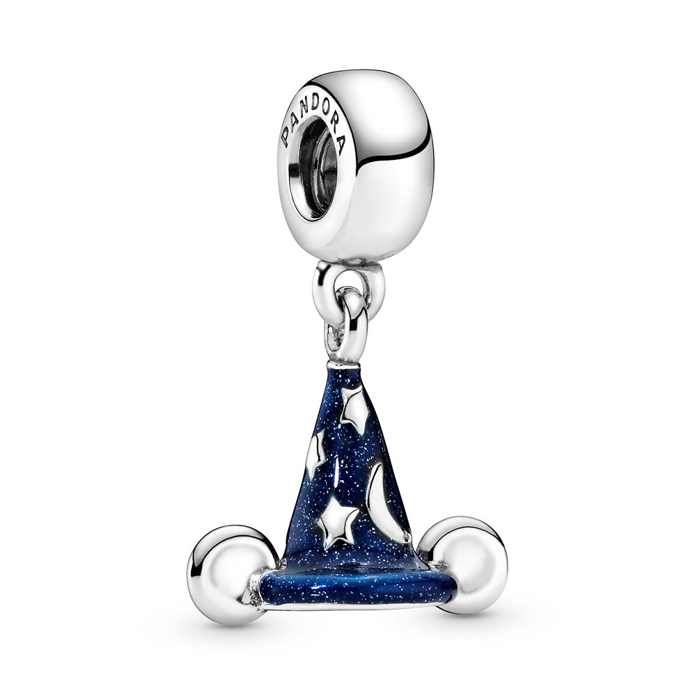 The magical Sorcerer's Hat borrowed by the sorcerer's apprentice, Mickey Mouse, in Walt Disney's Fantasia becomes a dazzling, dangling charm from Pandora. Glittering blue enamel accents the sterling silver mouse-eared pendant with Pandora logo bead.