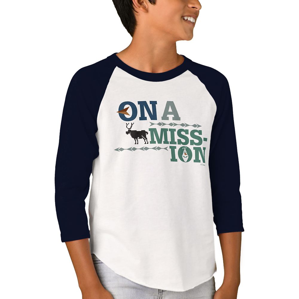 Building little Olafs in the front yard will be twice as fun with this customizable raglan t-shirt featuring an ''On a Mission'' graphic with Sven and the adorable snowman himself, inspired by Olaf's Frozen Adventure.