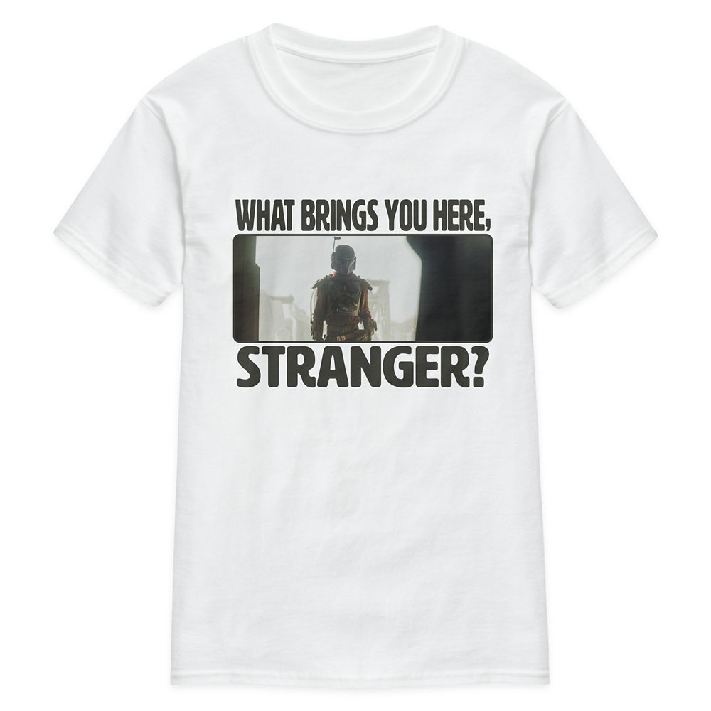Enter Cobb Vanth in his bartered Mandalorian armor asking, ''what brings you here, stranger?'' on this customized t-shirt inspired by Star Wars: The Mandalorian.