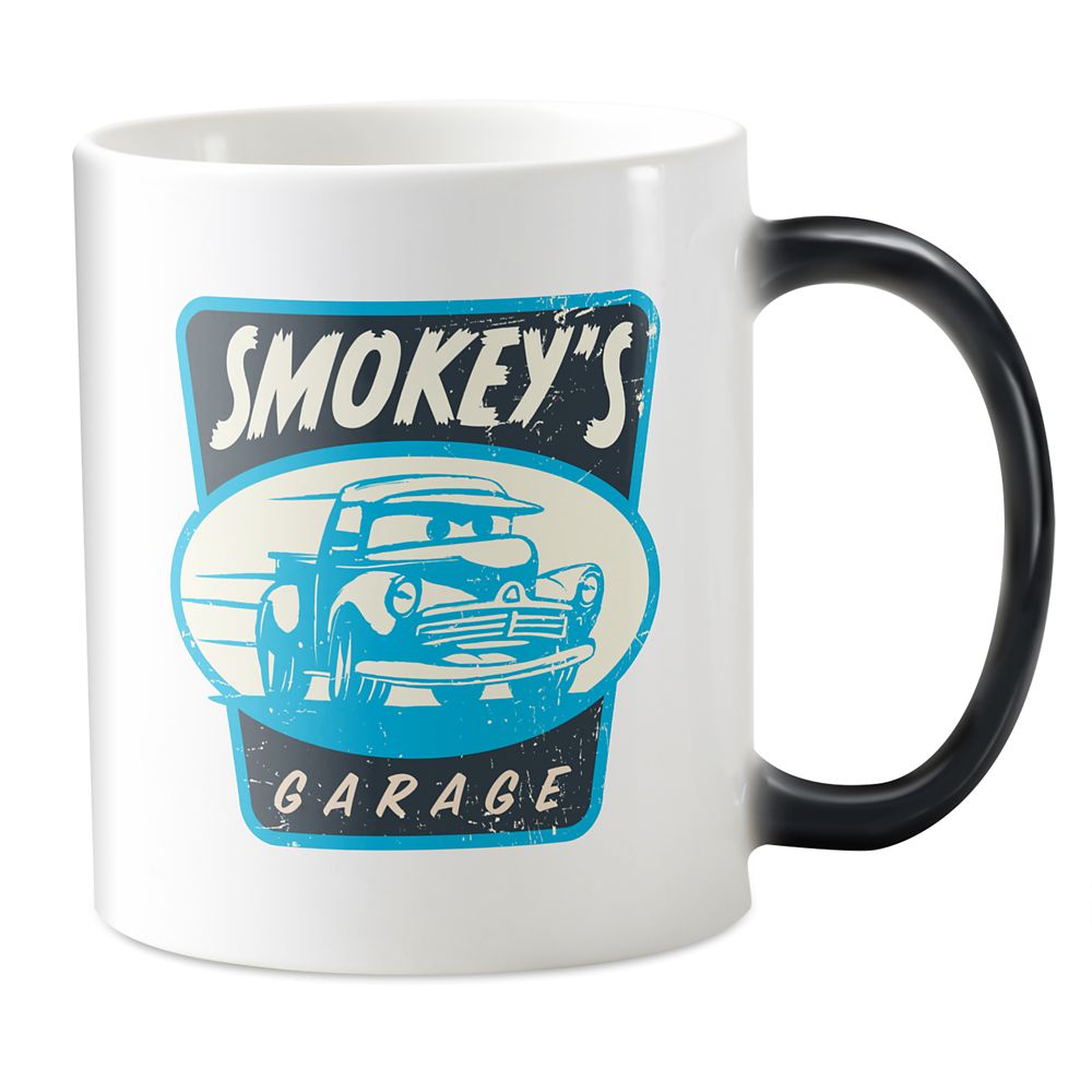 Get your motor running in the morning with a cup of joe in this ''magical'' Smokey's Garage mug inspired by PIXAR's Cars 3. Just add hot liquid, and watch what happens!.