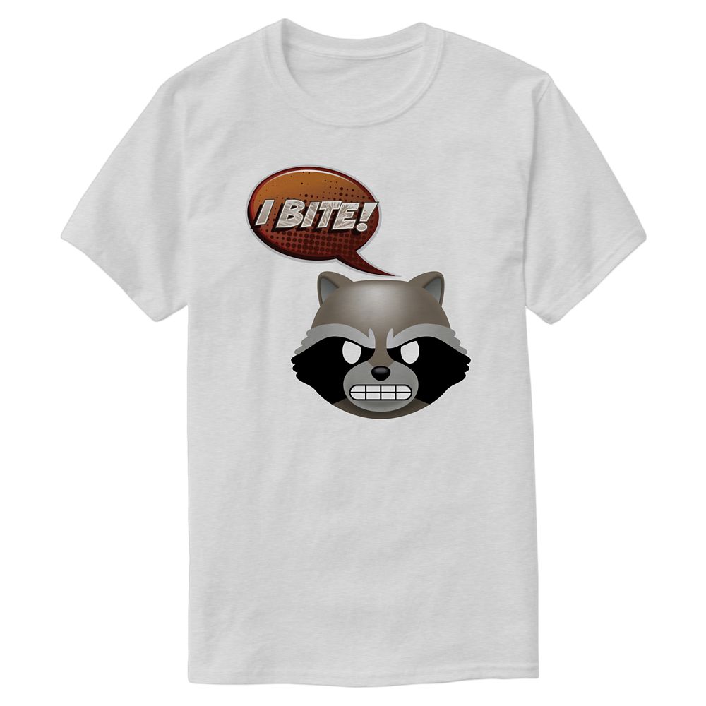 Don't say you weren't warned. The ferocious Guardian of the Galaxy, Rocket Raccoon may look harmless as a cute Emoji character on this customizable tee, but his gritted teeth tell another story.