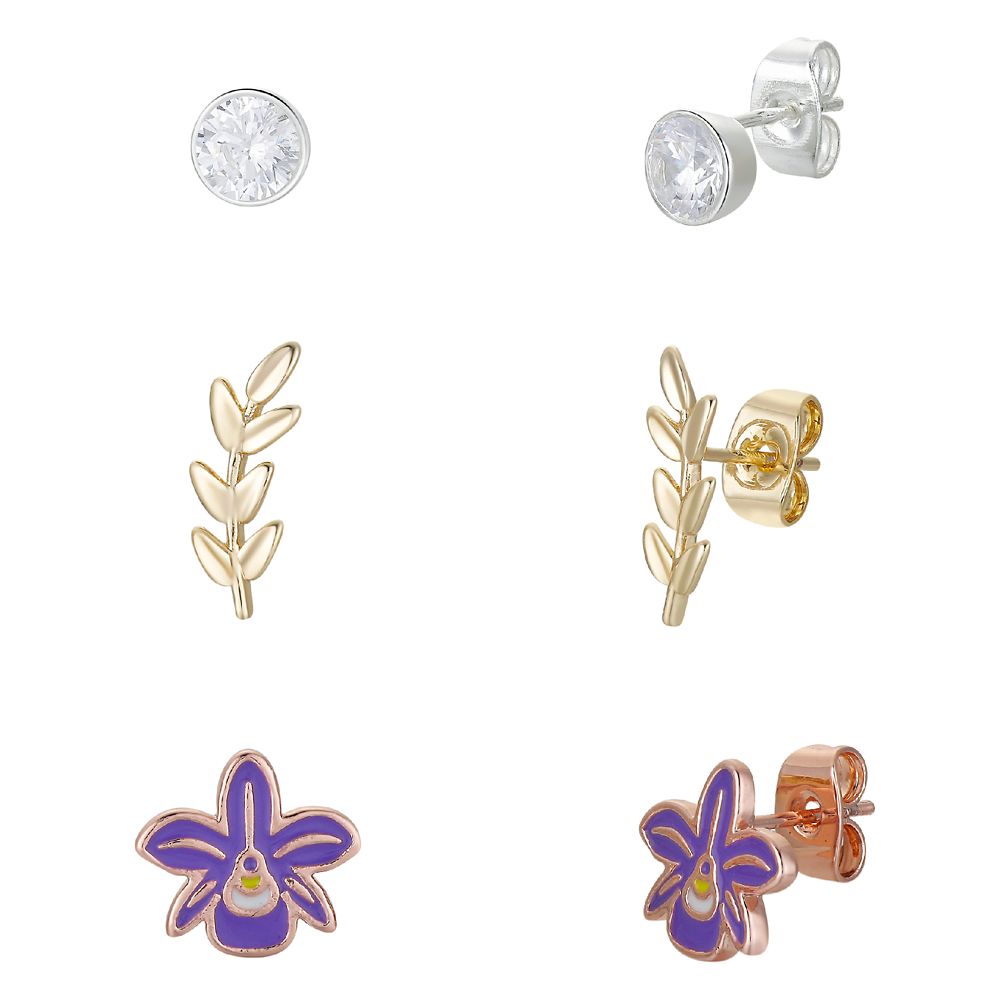 A purple orchid captures the lush Colombian mountain setting of Disney's Encanto. With its rose gold setting, it's one of the three different pairs of earrings in this set that can be mixed and matched to suit any occasion and outfit.