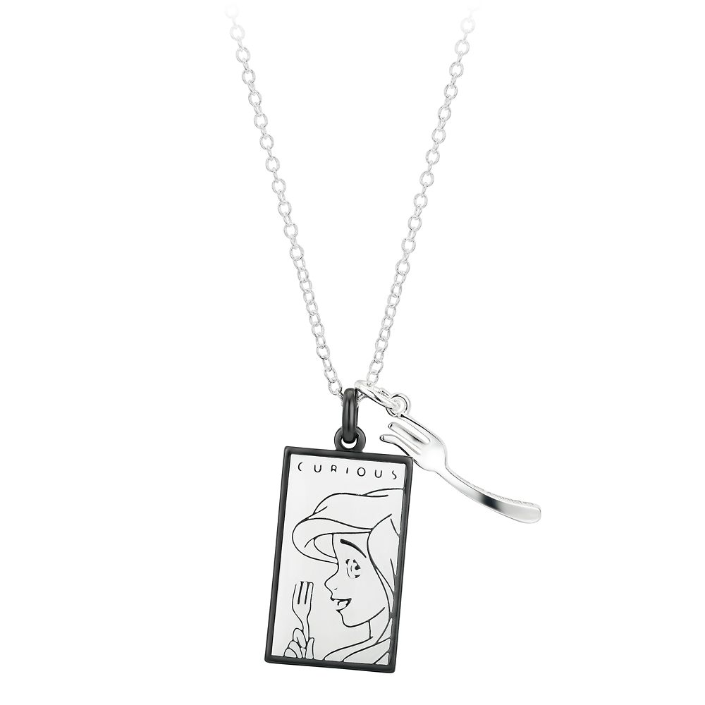 The always ''Curious'' Ariel is paired with a dinglehopper on this necklace. Inspired by Disney's The Little Mermaid, the large pendant includes the Disney Princess within a black rhodium border, while the dimensional dinglehopper pendant makes this piece one every Ariel fan will treasure.