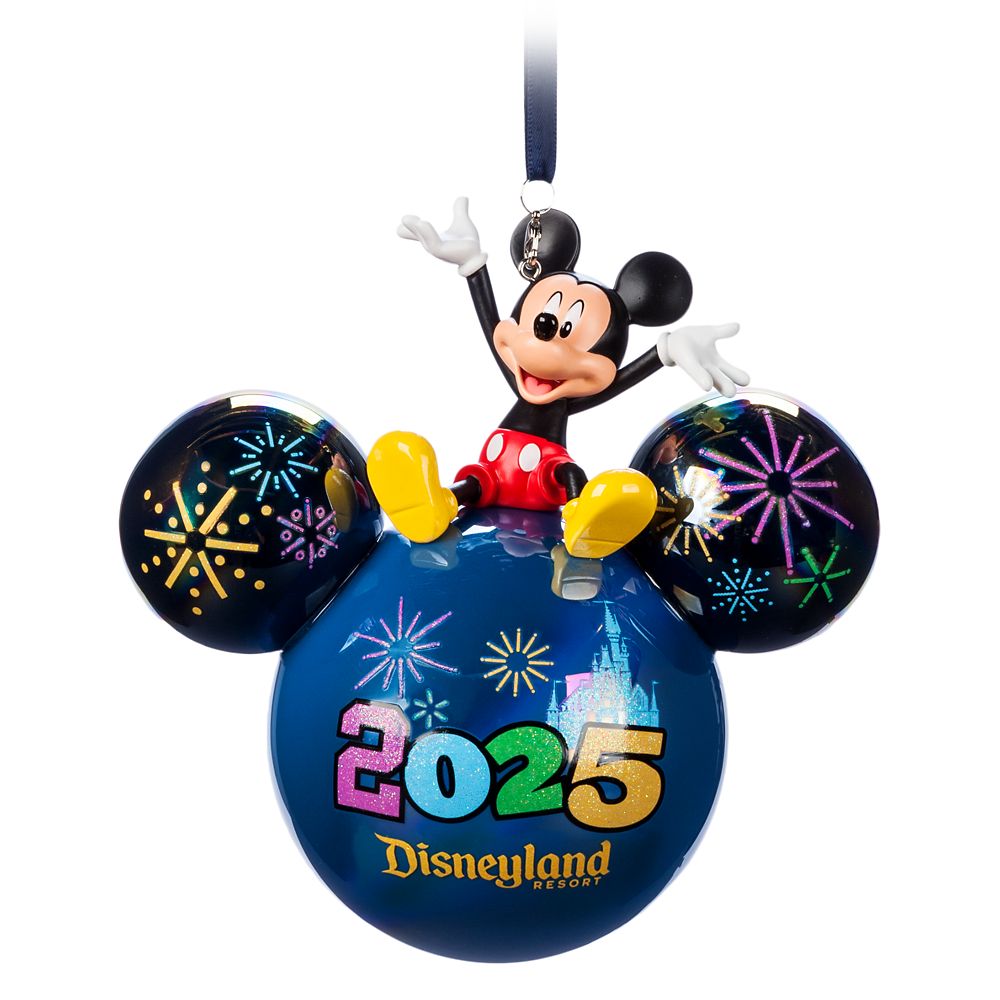 The magic will hang around awhile with this merry mouse icon glass ball ornament topped by a sculpted Mickey figure plus 2025 logo. It's a sparkling souvenir of your Disneyland dream vacation.