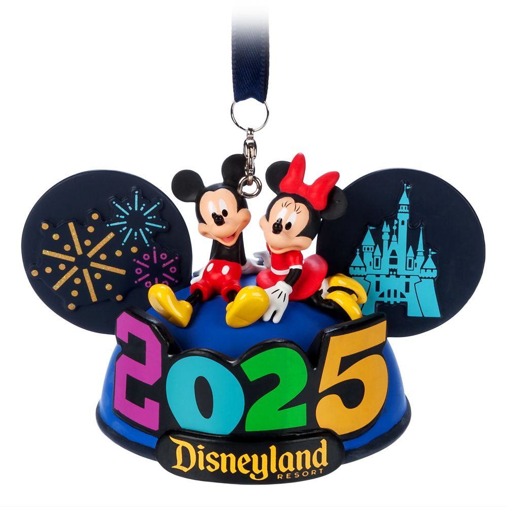 Alongside Minnie, Mickey tips his topper to 2025 on a contemporary ear hat ornament that will brighten every day of the year with magical memories of Disneyland while our 2025 logo lights up the night!.