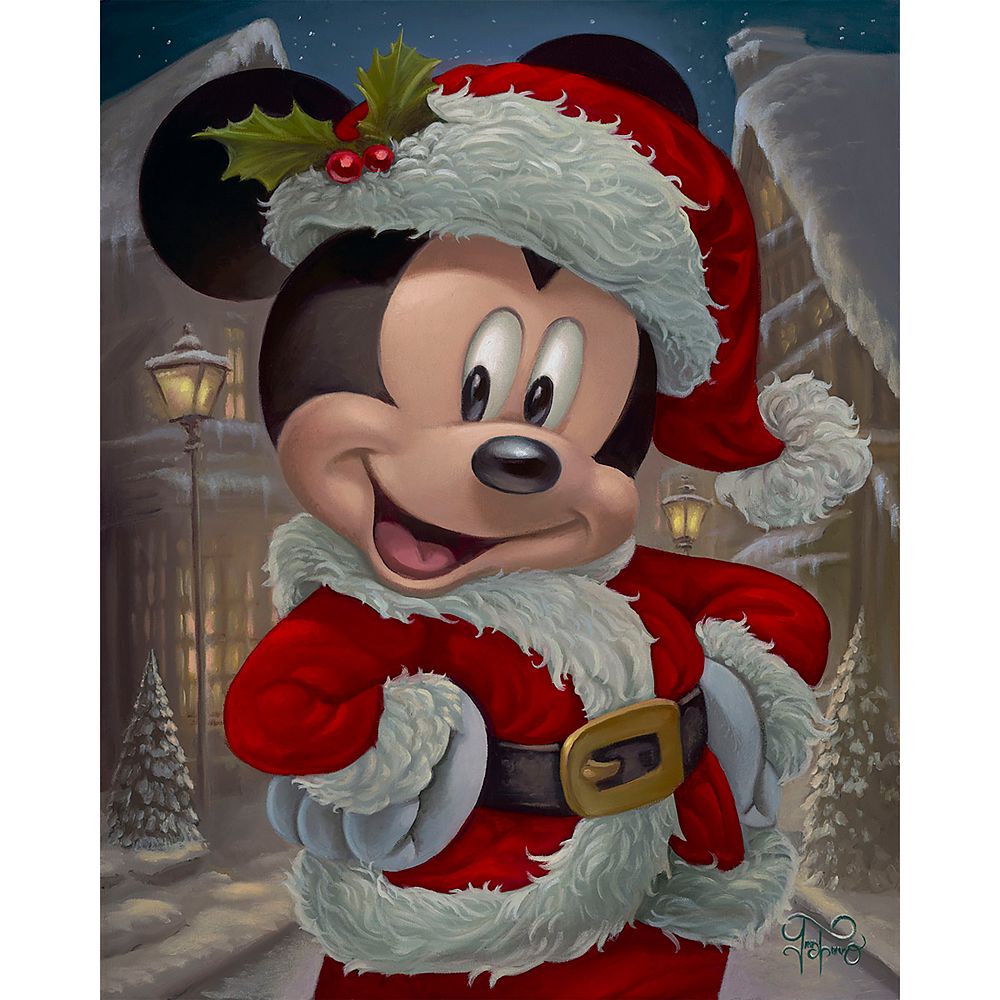 Ho ho ho! Santa Mickey is ready to deliver a big smile to your home with this festive artwork by Jared Franco. ''Merry Mickey'' features Mickey, resplendent in his Santa outfit, posing on a snow-covered street at night. This limited edition giclée print comes gallery wrapped on canvas and ready to hang in your home as the centerpiece of your holiday decor.