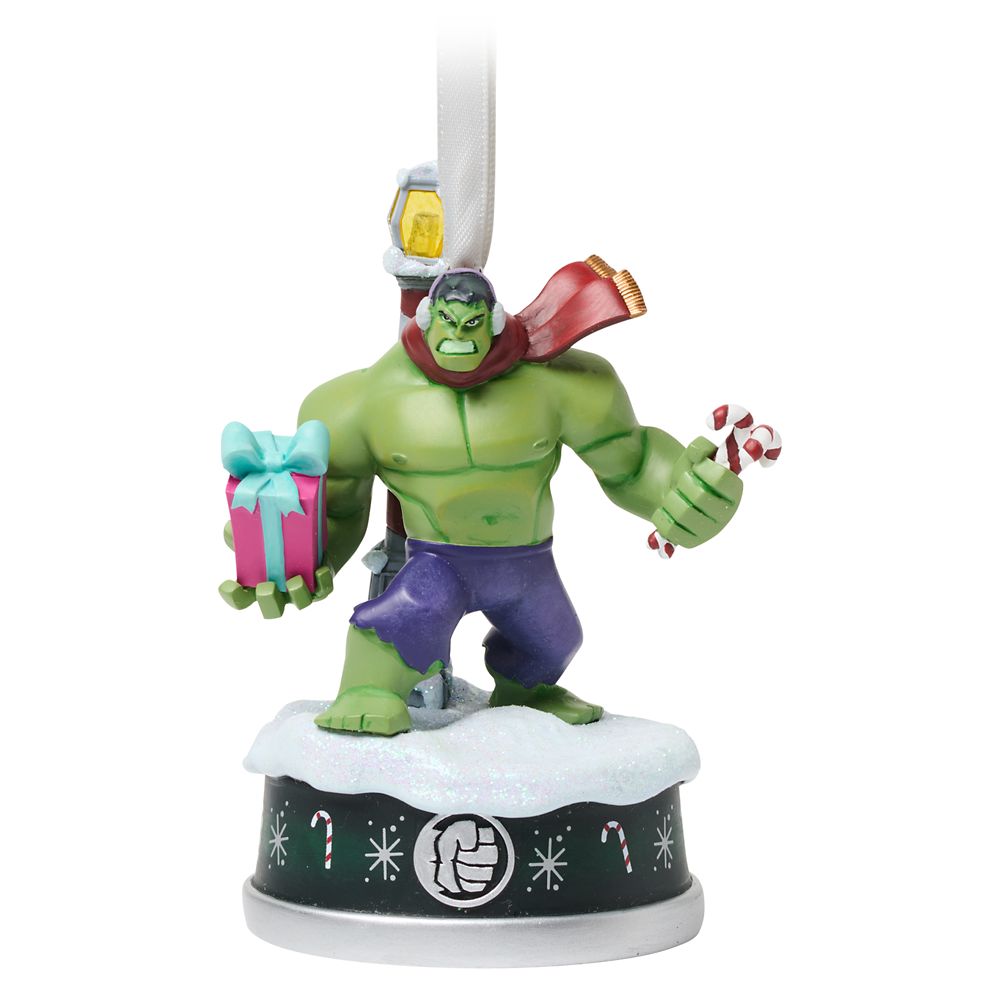 Hulk smash! You may not want to be around when our incredible Hulk ornament decks the halls. The detailed figural Avenger is featured atop sparkling snow standing beside a street lamp that lights up! Be sure to choose the right gift for him or he might ruin Christmas for everybody. You wouldn't like him when he's angry!.